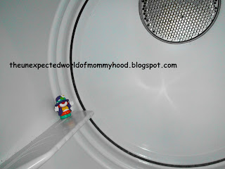 When the clothes are done, Little Clown will help Mommy load them in the dryer.